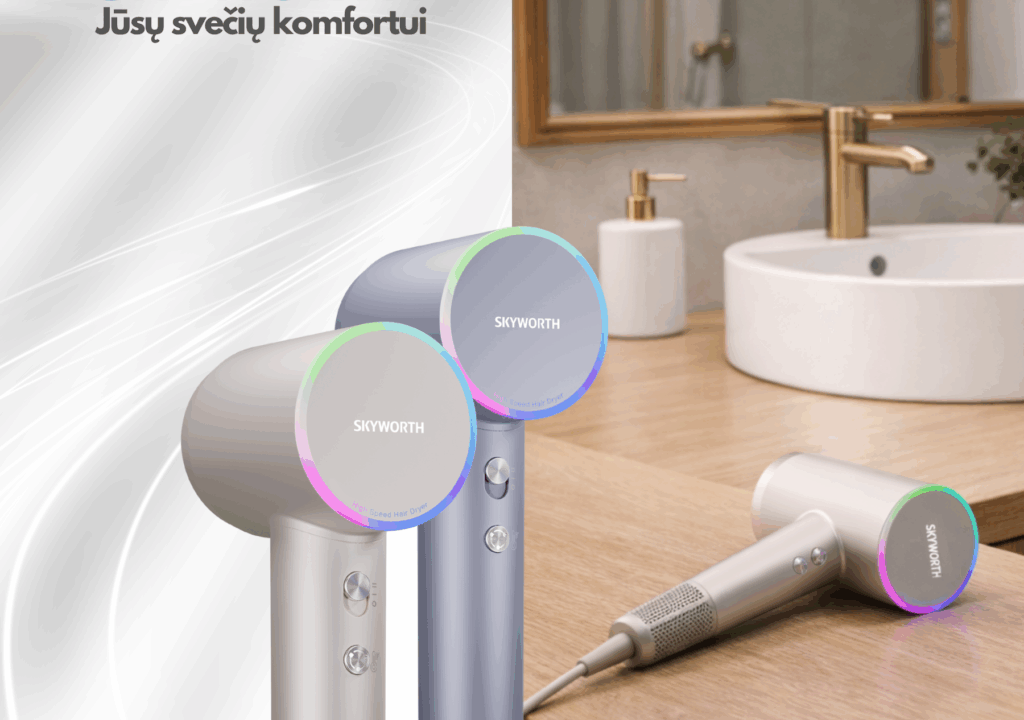 SKYWORTH – inovatyvūs plaukų džiovintuvai Jūsų svečių komfortui.