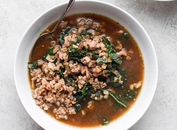 Nėra nieko geriau už didelį dubenį šios maltos kalakutienos farro sriubos! Tereikia viską sumesti į puodą, leisti...