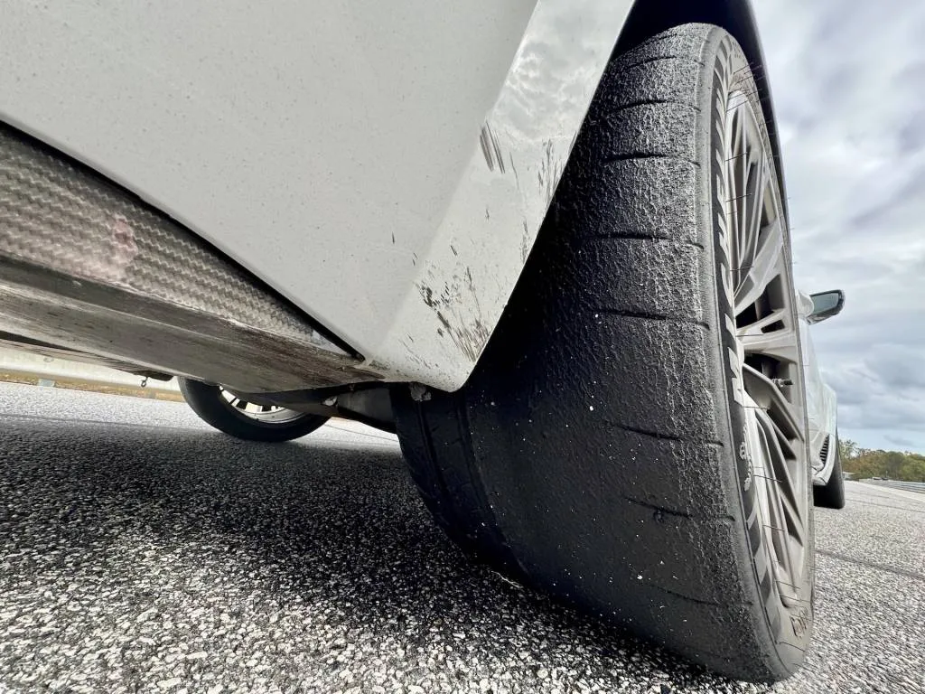The basis is a set of 275/35ZR19 front and 305/30ZR19 rear Michelin Cup 2 R tires, which are basically street-legal slicks. They are summer-only tires that shouldn’t be driven in cold temps below 40 degrees, and they aren’t going to handle rain, especially standing water, well.