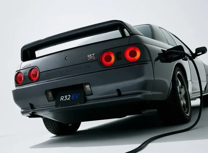 „Nissan“ pristatė R32 Skyline GT-R, konvertuotą veikti naudojant akumuliatoriaus energiją 62 kWh baterija buvo paimta iš buvusio...