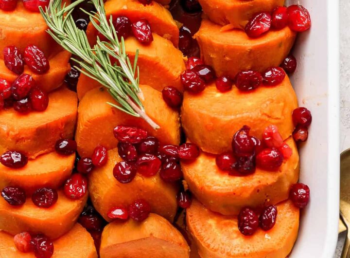 Tai visiškas rudens svajonių garnyras Klevo spanguolių saldžiosios bulvės išeina skaniai saldus ir karamelizuotas su spanguolių aitrumu....